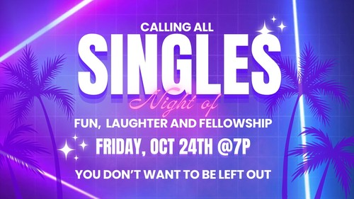 It is time to recognize our "Singles" for a time to fellowship. Do not miss this time to come out and enjoy an evening to unwind and relax with others. Put this date/time on your calendars!
