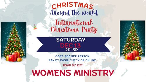 For our Women's Christmas Around the World Party, you can register online or in the foyer. We are going to have a great time, don't miss it.